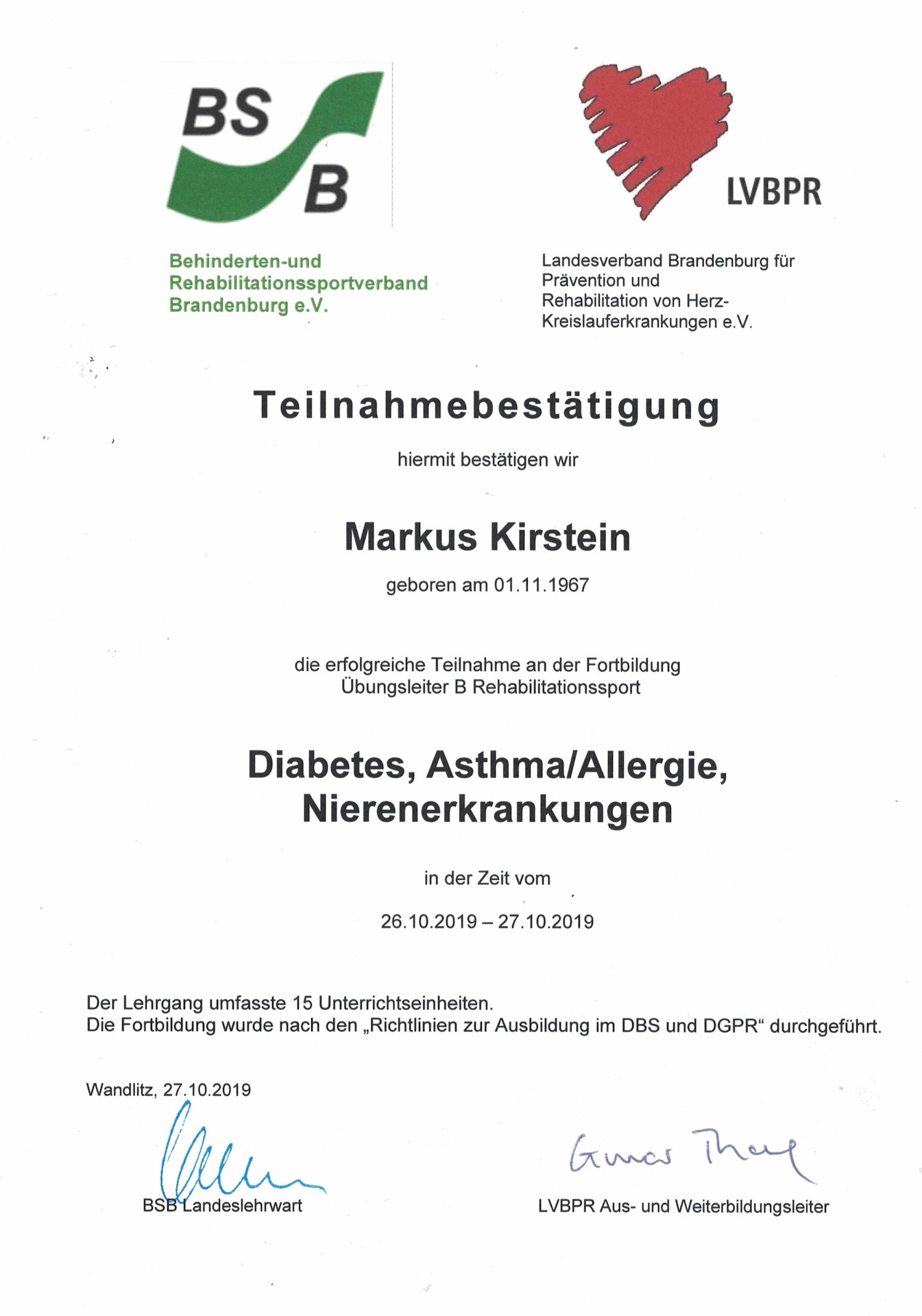 Teilnahme am Lehrgang -